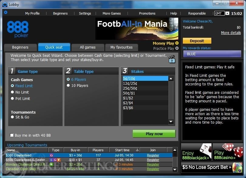 Poker sites like 888poker will also usually offer a no-deposit bonus with some free cash or tournament tickets provided without even making a deposit. Read more about poker freerolls here: